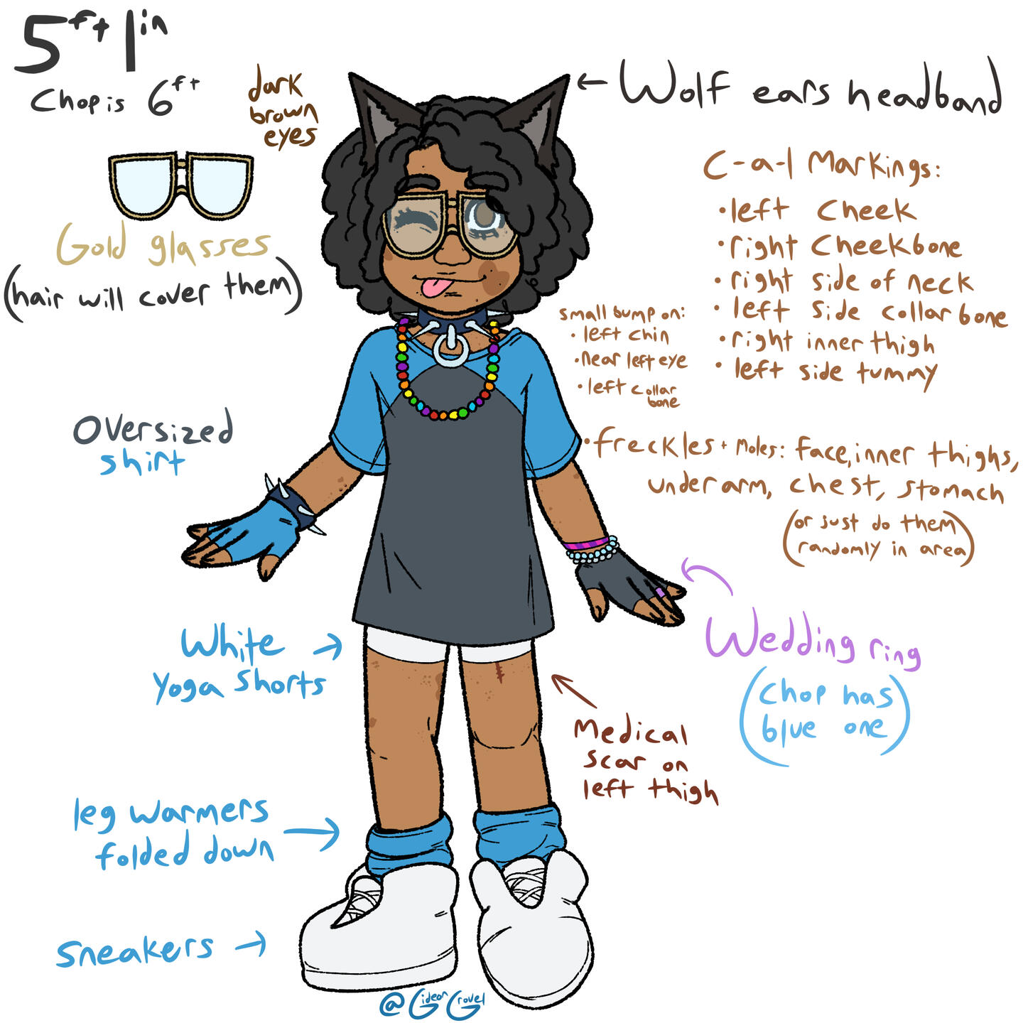 Name: GideonAge: 29Pronouns: He / It / TheyGender: Nonbinary transmasc, i have a few xenogender i ID with as well, but these are the main ones; Canisgender, Vampiregender, AngelgenderOrientations: Queer, Demiromantic, Asexual, Fictosexual/romanitc, Acespike (This only applies to my F/Os)Extra Info: Black, Autistic, Dyslexic, INFP, Agnostic, 5'1, Furry, Self shipping since i was like 8 before i even knew what it was. 🫰🏾